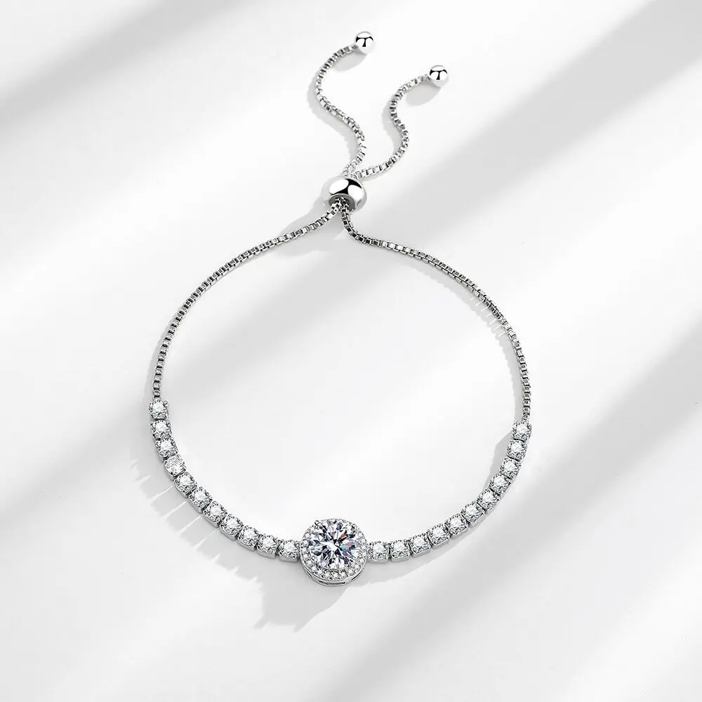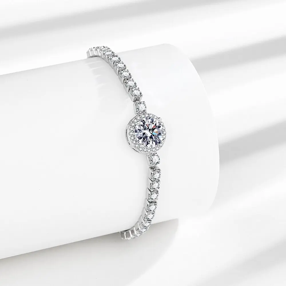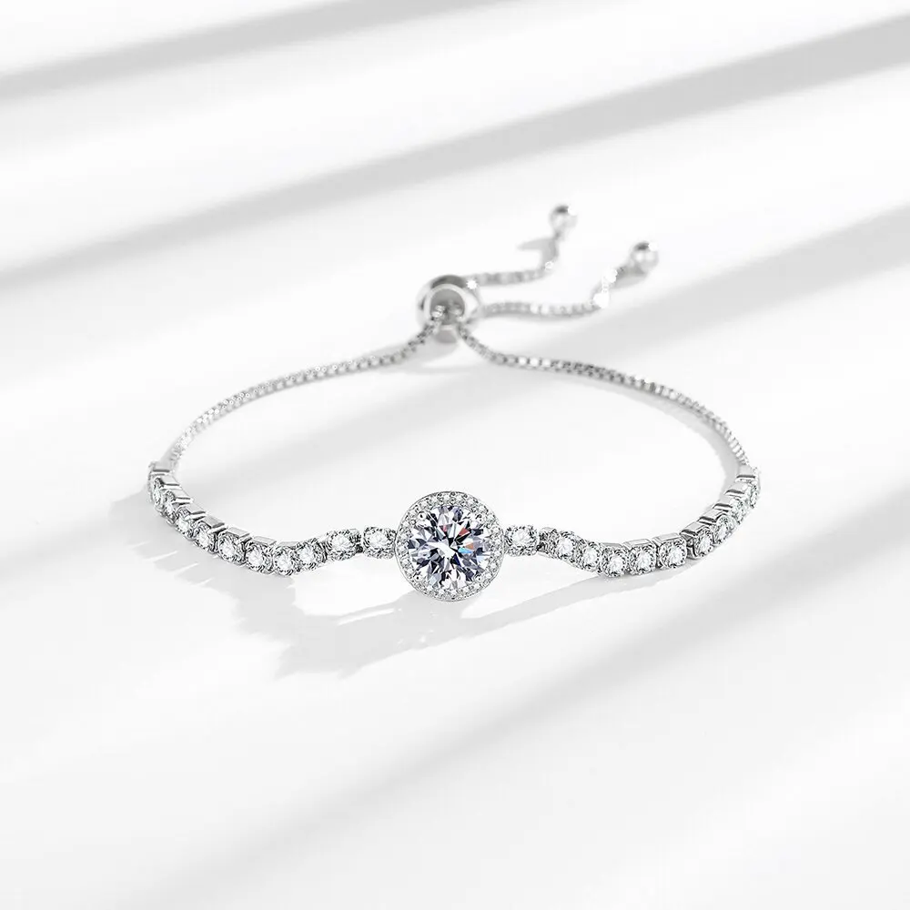 This elegant bracelet is crafted from 925 sterling silver and features dazzling zircon stones set within a sleek, geometric design. Its polished finish and contemporary link style create a modern, trendy look that catches the light beautifully, making it a standout piece for any special occasion.