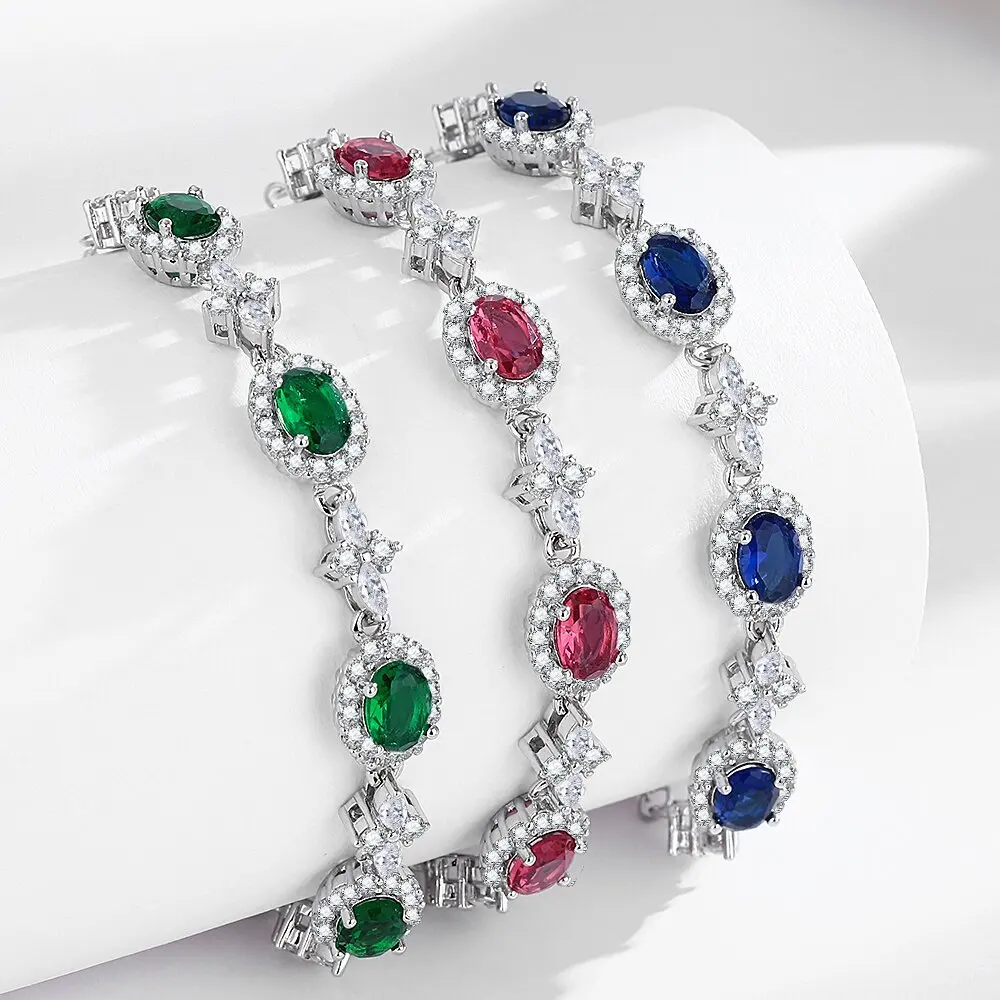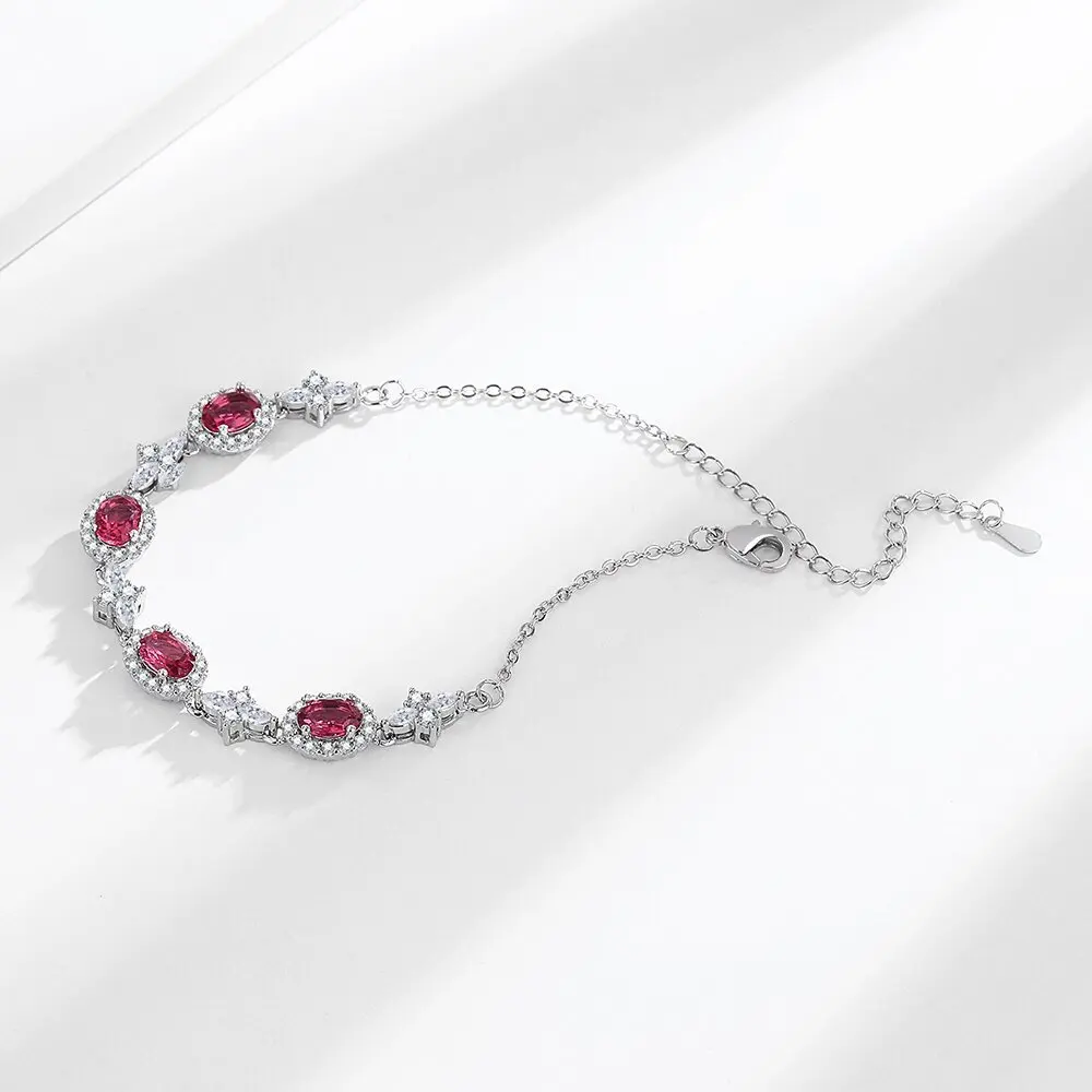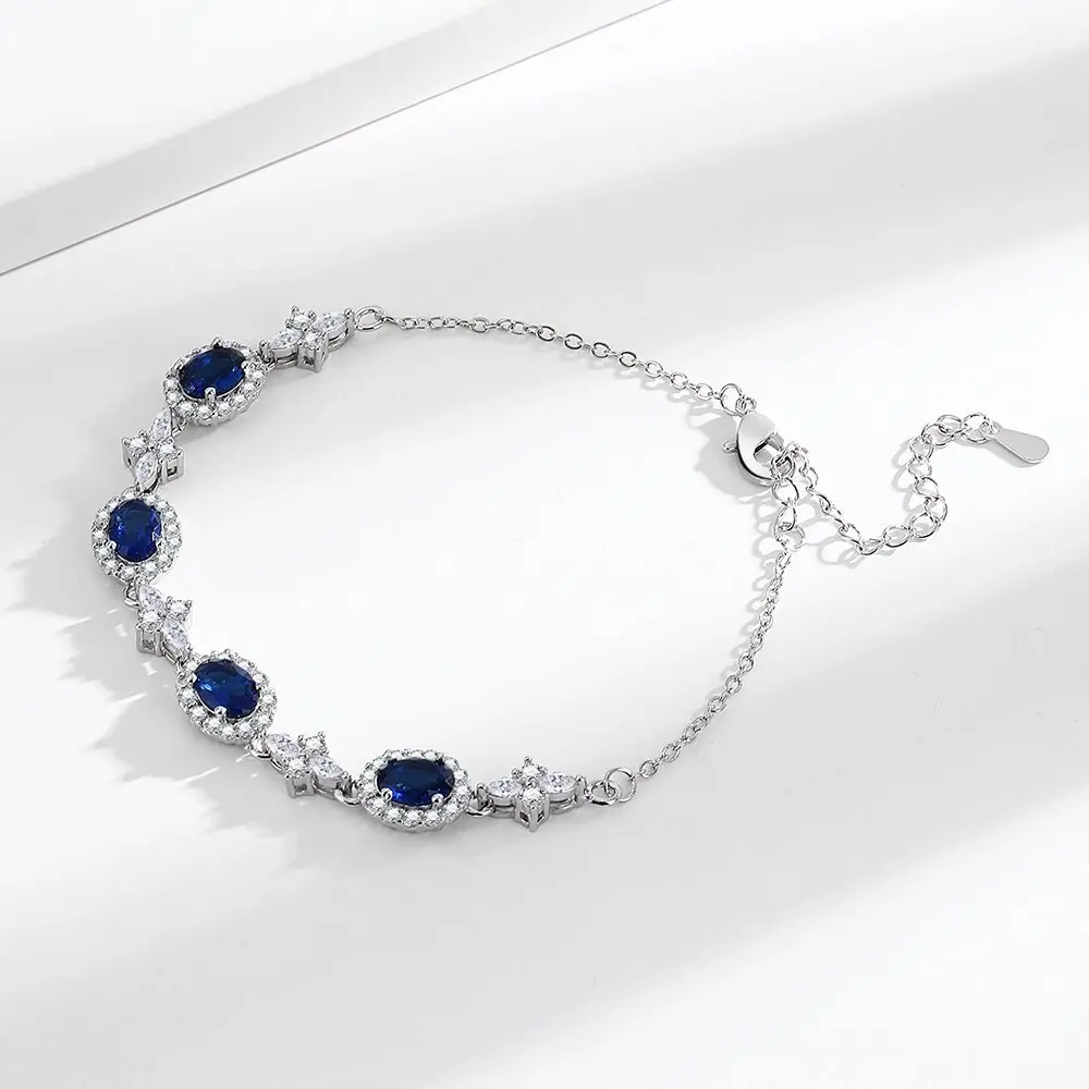 This stylish bracelet is crafted from 925 sterling silver and features sparkling zircon stones set within a sleek geometric design. Its polished finish and contemporary chain-and-link style create a modern, trendy look that adds a subtle yet eye-catching sparkle to any outfit.